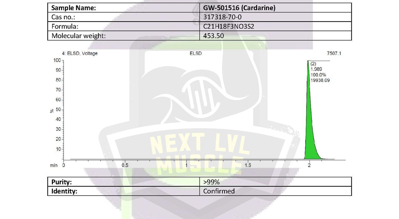 Take the daily dose spread over the day. Start with 10mg and increase to 20mg if necessary. Take the recommended dose 2 to 3 hours before you start training. We recommend that Next lvl muscle GW- 501516 Cardarine not be used for more than 12 weeks at a time. Then wait 6 weeks until you start a new cycle.