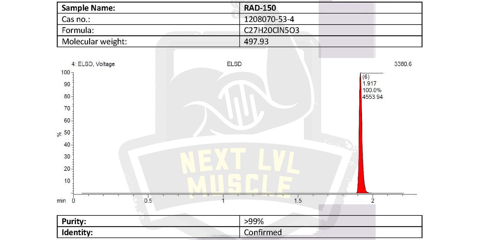 The recommended daily dose of RAD-150 is 10 to 20mg per day for 8 to 10 weeks. Post Cycle Therapy is recommended after each cycle of RAD-150. The half-life of this SARM is 48 hours. By comparison, this is more than double the predecessor RAD-140.