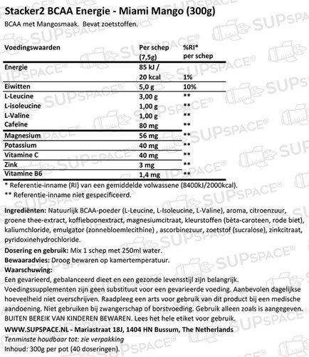Stacker2 BCAA Energy distinguishes itself by its innovative composition that combines essential nutrients for maximum results. Each serving contains: